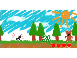 くろねこのぼうけんは黒猫を操作して敵を避けながらゴールを目指す2Dスクロールアクションゲームです。難易度はスペースキーしか用いないという操作の簡単さもあり、そこそこ易しいと思います。